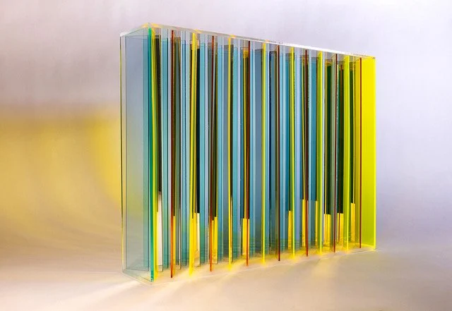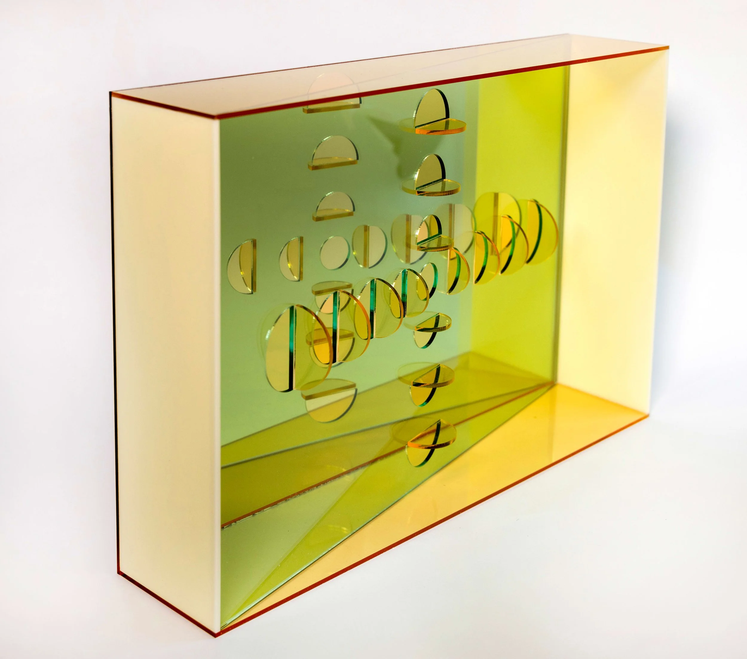 Rodríguez utilizes a variety of mediums in her work ranging from photography, light sculpture, and installation through integrating various technologies. In her newest body of work, Rodríguez explores the shifting relationship between light, shape, perception, and its effect on representation and illusion by manipulating acrylic glass.