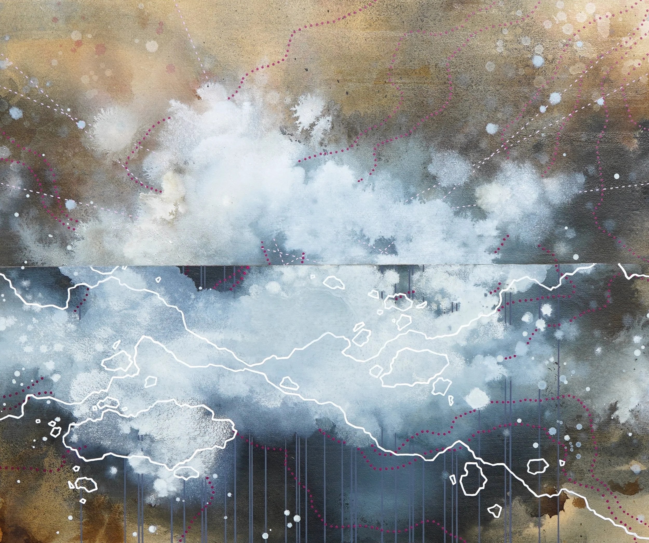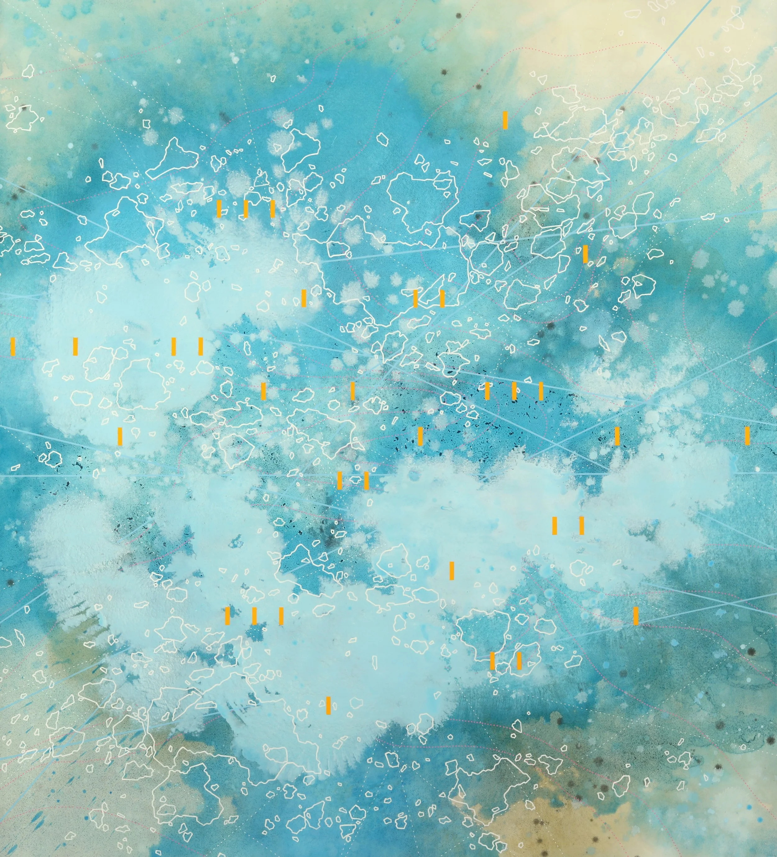 Lisa Kairos makes dynamic abstract landscapes to get lost in; her work is inspired by the intersection of environment, perception, beauty, and technology. A California native, Lisa received her BA in fine art from UCSC and has explored themes of western landscape in her painting practice for over 35 years. She has exhibited in group and solo shows and art fairs throughout the United States. Her work is held in many private and corporate collections, and she has completed numerous commissions for public and private spaces. She currently lives and works in Santa Cruz, CA.